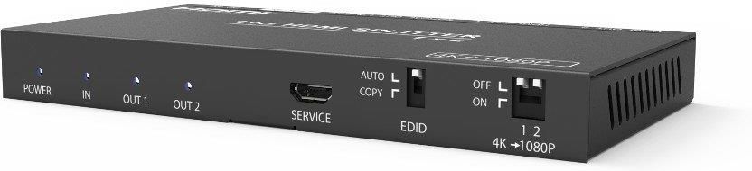 Rozdzielacz HDMI 2.0b 1x2, obsługuje rozdzielczości do 4Kx2k 60Hz w 8 bit 4:4:4, przesyła sygnał HDR, wspiera Dolby Vision, dźwięk wielokanałowy z DTS -HD MA i Dolby Atmos, DTS:X, gwarantuje pełną obsługę 3D, HDCP 2.2, ustawienia EDID. Pozwala na niezależne skalowanie wyjść oraz posiada możliwość wyodrębnienia z HDMI sygnału audio optycznego (SPDIF) oraz analogowe (1x 3.5mm stereo mini jack)Rozdzielacz HDV-B12SA 1x2 HDMI przesyła jedno źródło HDMI na dwa wyjścia HDMI jedocześnie.Jest w pełni kompatybilny z sygnałami 3D i rozdzielczościami do 4K2K w 60Hz z 4:4:4. Oferuje rozwiązania do supermarketów, centrów handlowych, HDTV, STB, DVD oraz projektorów, centrów kontroli i dystrybucji informacji, sal konferencyjnych, szkoleń i edukacji, firmowych sal pokazowych, instalacji kina domowego z urządzeniami full HD i 4K 60Hz jednocześnie i wielu innych. Pozwala na niezależne skalowanie wyjść. Przy sygnale wejściowym 4K możemy dowolnie skalować wyjścia, np. oba na 1080p, lub niezależnie, jedno na 4K a drugie na 1080p. Ponadto HDV-B12SA pozwala na wyodrębnienie sygnału audio z HDMI: optycznego i analogowego (posiada wyjścia: L/R audio - 3.5mm Stereo Mini-jack oraz optyczne - S/PDIF). Cechy:• HDMI 2.0b, HDCP 2.2• Wspiera rozdzielczości do 4K2K 60Hz z 24bit RGB/YCBCR 4:4:4/YCBCR 4:2:2• Wspiera 3D z rozdzielczościami do 4K2K 30Hz• Wspiera audio LPCM 7.1CH, Dolby TrueHD, Dolby Atmos, DTS:X oraz DTS-HD Master Audio• Wspiera EDID: Auto lub Copy z 1 wyjścia nr 1• Mały i prosty w instalacji• Przesyła sygnał HDR oraz wspiera Dolby Vision• Niezależne skalowanie wyjść z 4K do 1080p• Wyjścia audio optyczne oraz analogowe 3.5mm