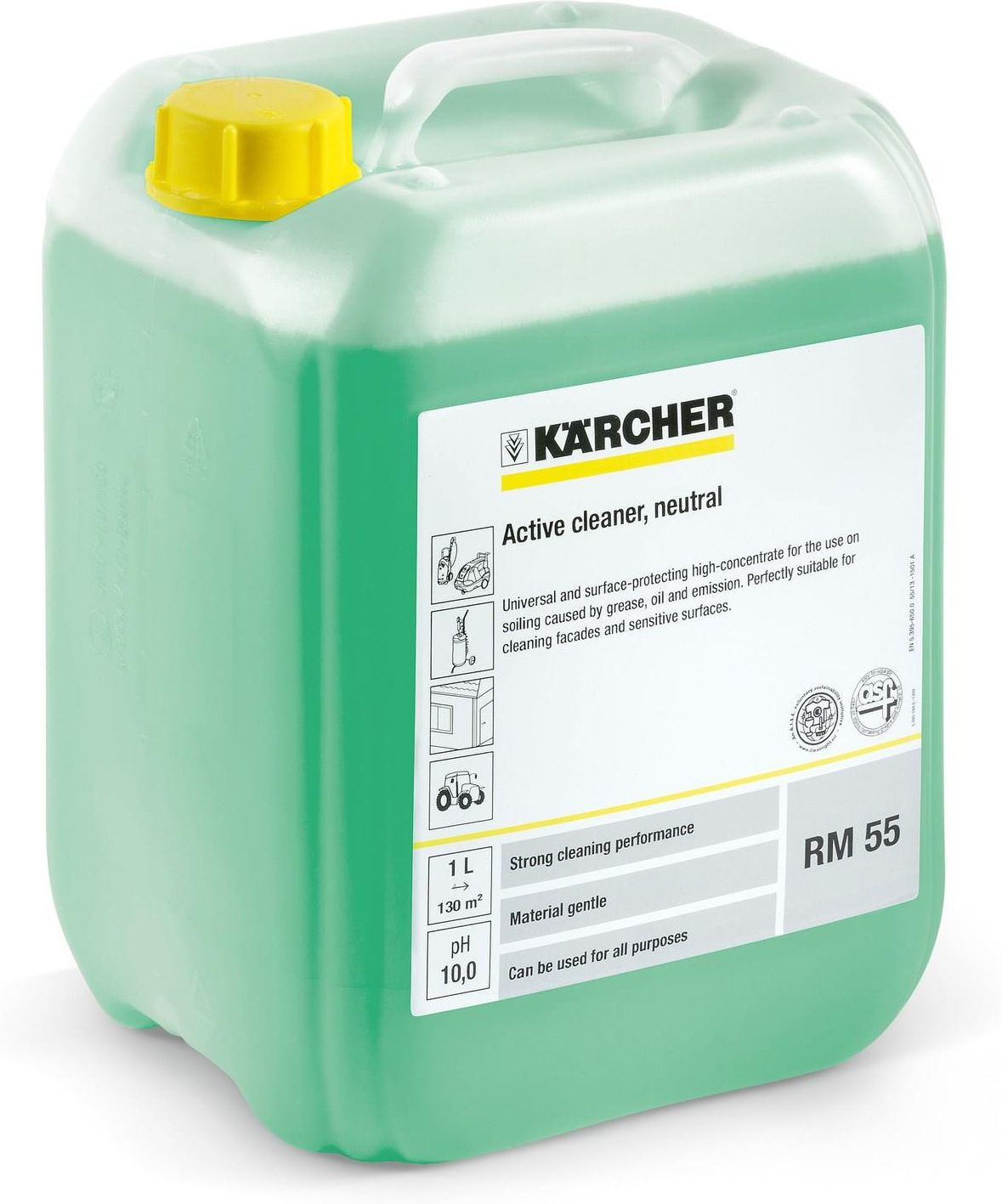 RM 55 ASF Uniwersalny środek czyszczący Skuteczny środek w koncentracie, przeznaczony do mycia wysokociśnieniowego. Pomocny w usuwaniu uporczywych zanieczyszczeń z tłuszczu, oleju i zabrudzeń emisyjnych. Polecany do czyszczenia elewacji. Sprawdź pozostałą ofertę produktów Kärcher z serii …
