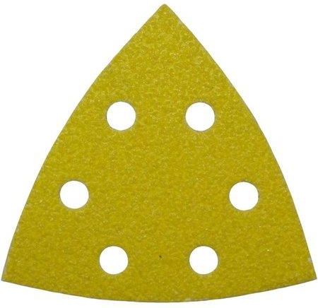 Opis produktu: Papier ścierny elastyczny, tlenek glinu z dodatkową powłoką zapobiegającą przywieraniu pyłu – nasypem z niepylącego stearynianu (żółty) – najlepszy do prac przygotowawczych i wykończeniowych, przy docieraniu farb, lakierów, tynków, szpachlówki Ochrona przed zatykaniem zapewnia szybkie usuwanie urobku i większą wydajność w porównaniu z papierem standardowym 2-krotnie dłuższa żywotność w porównaniu do standardowego papieru ściernego Odpowiednie do każdego rodzaju drewna, farby, gipsu, tynku i lakieru. Dane techniczne: Typ: Delta Wymiary: 93x93 mm Granulacja: 120 Ilość w opakowaniu : 10