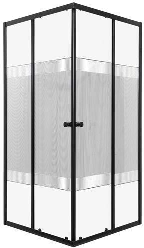 Xenia SQ Black 80 Poznaj KERRA - kabinę prysznicową, która łączy nowoczesny design z funkcjonalnoscią na najwyższym poziomie. Czarna aluminiowa rama i stylowy, transparentny panel ze szklanym wzorem nadają Twojej łazience wyjątkowego charakteru i elegancji. Przesuwne, dwuskrzydłowe drzwi oszczędzają miejsce, a solidne 4mm hartowane szkło gwarantuje bezpieczeństwo i trwałość przez lata. Xenia SQ Black to idealne rozwiązanie dla tych, którzy cenią styl, wygodę i łatwość utrzymania czystości- Twoja łazienka zasługuje na to co najlepsze! Dane techniczne: Wymiary: 78 x 78 x 185 cm Profile: aluminiowe, czarne, regulowane w zakresie od 25 do 15 mm od wymiaru nominalnego Szkło: 4 mm (stałe ścianki) 5mm (drzwi), hartowane, transparentne z czarnym wzorem