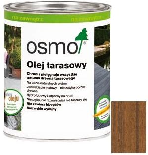 OSMO® OLEJ TARASOWY jest olejem do zastosowania zewnętrznego na powierzchnie drewniane. Sprawia, że powierzchnia drewna staje się gładka, łatwa w pielęgnacji oraz nie chłonie wody i brudu. Jest niezwykle wytrzymały, wydajny i łatwy w użyciu. Olej wnika głęboko, reguluje poziom wilgoci i zapobiega pęcznieniu i kurczeniu się drewna. Warstwa nie zatyka porów, nie pęka, nie łuszczy się i nie rozwarstwia. Aby ją odświeżyć wystarczy nanieść jeszcze jedna warstwę ( bez szlifowania = bez kurzu!). Olej jest wytarzany na bazie naturalnych olejów roślinnych (olej słonecznikowy, olej sojowy). Wydajność 125ml próbka - 3m2 1 warstwy 18 m2/L Zastosowanie Chroni, pielęgnuje i upiększa pokrycia drewniane i meble ogrodowe z drewna bangkirai, cedru i innych rodzajów drewna – nadaje się także do drewna tekowego, eukaliptusa i innych rodzajów drewna szlachetnego. Przygotowanie Powierzchnia drewna musi być czysta, sucha i nie zmarznięta (max 20% wilgotności). Olej jest gotowy do użycia, nie należy go rozcieńczać. Dokładnie zamieszać. Stara warstwę lazury dokładnie oczyścić lub delikatnie oszlifować. Stare warstwy farb i lakierów należy usunąć. Jeżeli to możliwe pokryć drewno pierwszą warstwą ze wszystkich stron jeszcze przed montażem. Jeżeli pożądana jest dodatkowa ochrona przed pleśnią, sinizną lub owadami (szczególnie w przypadku drzew iglastych takich jak sosna), drewno należy wcześniej- możliwie ze wszystkich stron- pokryć impregnatem Osmo WR*. *Przy korzystaniu z biocydów należy zadbać o bezpieczeństwo. Przed użyciem należy zawsze zapoznać się z treścią ulotki i informacjami dotyczącymi produktu. Sposób użycia Na czystym i suchym drewnie należy pędzlem (Osmo pędzel do malowania- 114) lub szmatką (np. w przypadku mebli) nałożyć cienką warstwę zgodnie z kierunkiem naturalnych słojów drewna. Do szybkiej pracy na dużych powierzchniach zaleca się użycie Osmo Szczotki do malowania podłóg (150 mm), dzięki której można pracować w pozycji stojącej i tym samym odciążyć plecy. Dokładnie i równomiernie wygładzić. Pozostawić do wyschnięcia w dobrze wentylowanym miejscu. Czas schnięcia to ok. 12 godzin (w normalnych warunkach 23oC / 50% wilgotności powietrza). Przy niskich temperaturach i/lub wysokiej wilgotności czas schnięcia wydłuża się. Następnie nanieść druga warstwę- również cienką. Drewno o powierzchni chropowatej lub żłobkowanej ze względu na strukturę powierzchniową chłonie więcej materiału. Gotowy wynik zależny jest również od jakości drewna, z tego względu należy wykonać malowanie próbne. Okres trwałości 5 lat lub dłużej, jeśli produkt przechowywany jest w suchych warunkach i jest szczelnie zamknięty. Jeśli produkt zgęstnieje pod wpływem mrozu, należy przechowywać go w temperaturze pokojowej na 24-36 godzin przed użyciem. WAŻNE! Chronić przed dziećmi. Unikać zanieczyszczenia skory i oczu. Zanieczyszczone oczy natychmiast przemyć dużą ilością wody i zasięgnąć porady lekarza. Tekstylia nasączone płynnym środkiem należy po ich użyciu natychmiast uprać lub przechowywać w szczelnie zamkniętym metalowym pojemniku (duże niebezpieczeństwo samozapłonu). Dostępne kolory 004 Daglezja (naturalnie stonowany); 006 Bangkirai (naturalnie stonowany); 007 Teak (bezbarwny); 009 Modrzew (naturalnie stonowany); 010 Termodrewno (naturalnie stonowany); 013 Garapa (naturalnie stonowany); 014 Massaranduba (naturalnie stonowany); 016 Bangkirai (ciemny); 019 Szary; 020 Czarny - DOSTĘPNY DO WYCZERPANIA ZAPASÓW; 021 Dąb Brunatny.