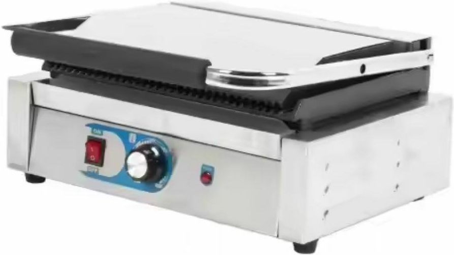 Profesjonalny grill kontaktowy idealnie sprawdzi się w każdej kuchni, zarówno domowej, jak i komercyjnej. Wykonany z wysokiej jakości stali nierdzewnej, gwarantuje trwałość i łatwość czyszczenia. Płyta ryflowana umożliwia przygotowanie potraw z charakterystycznymi paskami, idealnych do grillowania mięs, warzyw i innych produktów. ZALETY Wysoka jakość wykonania ze stali nierdzewnej Płyta ryflowana dla idealnych pasków na potrawach Szeroki zakres temperatury (50-300°C) Łatwość czyszczenia i konserwacji Kompaktowe wymiary, idealne do każdej kuchni DO POTRAW TAKICH, JAK: Steki Kotlety Ryby Warzywa Tosty Panini IDEALNY DO Restauracji Barów Kuchni domowych Imprez plenerowych