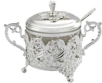 Cukiernica platerowana* to wyjątkowy i elegancki przedmiot, który doskonale sprawdzi się zarówno na specjalne okazje, jak i w codziennym użytku. To nie tylko pojemnik na cukier, ale także ozdoba stołu, która dodaje uroku każdemu przyjęciu lub spotkaniu. Oto kilka kluczowych cech i informacji na temat cukiernicy platerowanej: Wyjątkowy design: Cukiernica platerowana jest wykonana z wysokiej jakości metalu, który został poddany procesowi platerowania. Dzięki temu produkt ten prezentuje się bardzo elegancko i efektownie(atrakcyjnie zdobiona). Funkcjonalność: Ten produkt służy do przechowywania cukru, co sprawia, że jest niezbędny podczas serwowania herbaty, kawy czy innych napojów. Cukiernica jest wyposażona w pokrywkę/wieczko, które chroni cukier przed zanieczyszczeniem i też trochę przed wilgocią. Doskonała dekoracja stołu: Cukiernica platerowana to nie tylko praktyczny pojemnik, ale również element dekoracyjny stołu. Może być używana codziennie, ale również na różnego rodzaju uroczystościach, np.: rodzinne spotkanie ;-) Dzięki swojej elegancji i blaskowi przyciąga uwagę gości i nadaje prestiżu każdej okazji. Trwałość: Dzięki zastosowaniu platerowania, cukiernica jest odporowa na korozję i utratę blasku, a to oznacza, że będzie służyć przez wiele lat, zachowując swój piękny wygląd. Łatwa konserwacja: Cukiernicę platerowaną można łatwo utrzymywać w czystości, wystarczy regularnie ją czyścić i polerować, aby zachować jej blask i elegancję. Cukiernica platerowana to wyjątkowy produkt, który łączy w sobie funkcjonalność i estetykę. Dzięki swojemu wyglądowi i trwałości, doskonale sprawdza się jako element dekoracyjny stołu oraz praktyczny naczynie do serwowania cukru. Jest to również doskonały pomysł na prezent dla bliskich lub jako ozdoba w Twojej własnej kuchni. */proces platerowania zwany również galwanizacją, to technika powlekania przedmiotów warstwą metalu w celu poprawienia ich wyglądu, trwałości i innych właściwości. Platerowanie polega na pokrywaniu powierzchni danego przedmiotu cienką warstwą metalu, najczęściej złota, srebra lub miedzi, w celu uzyskania pożądanych właściwości estetycznych lub ochrony przed korozją. Proces ten jest szeroko wykorzystywany w przemyśle jubilerskim, produkcji zastawy stołowej(jak np.: cukiernice z naszej oferty), galanterii oraz w wielu innych dziedzinach.