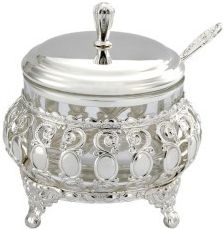 Cukiernica platerowana* to wyjątkowy i elegancki przedmiot, który doskonale sprawdzi się zarówno na specjalne okazje, jak i w codziennym użytku. To nie tylko pojemnik na cukier, ale także ozdoba stołu, która dodaje uroku każdemu przyjęciu lub spotkaniu. Oto kilka kluczowych cech i informacji na temat cukiernicy platerowanej: Wyjątkowy design: Cukiernica platerowana jest wykonana z wysokiej jakości metalu, który został poddany procesowi platerowania. Dzięki temu produkt ten prezentuje się bardzo elegancko i efektownie(atrakcyjnie zdobiona). Funkcjonalność: Ten produkt służy do przechowywania cukru, co sprawia, że jest niezbędny podczas serwowania herbaty, kawy czy innych napojów. Cukiernica jest wyposażona w pokrywkę/wieczko, które chroni cukier przed zanieczyszczeniem i też trochę przed wilgocią. Doskonała dekoracja stołu: Cukiernica platerowana to nie tylko praktyczny pojemnik, ale również element dekoracyjny stołu. Może być używana codziennie, ale również na różnego rodzaju uroczystościach, np.: rodzinne spotkanie ;-) Dzięki swojej elegancji i blaskowi przyciąga uwagę gości i nadaje prestiżu każdej okazji. Trwałość: Dzięki zastosowaniu platerowania, cukiernica jest odporowa na korozję i utratę blasku, a to oznacza, że będzie służyć przez wiele lat, zachowując swój piękny wygląd. Łatwa konserwacja: Cukiernicę platerowaną można łatwo utrzymywać w czystości, wystarczy regularnie ją czyścić i polerować, aby zachować jej blask i elegancję. Cukiernica platerowana to wyjątkowy produkt, który łączy w sobie funkcjonalność i estetykę. Dzięki swojemu wyglądowi i trwałości, doskonale sprawdza się jako element dekoracyjny stołu oraz praktyczny naczynie do serwowania cukru. Jest to również doskonały pomysł na prezent dla bliskich lub jako ozdoba w Twojej własnej kuchni. */proces platerowania zwany również galwanizacją, to technika powlekania przedmiotów warstwą metalu w celu poprawienia ich wyglądu, trwałości i innych właściwości. Platerowanie polega na pokrywaniu powierzchni danego przedmiotu cienką warstwą metalu, najczęściej złota, srebra lub miedzi, w celu uzyskania pożądanych właściwości estetycznych lub ochrony przed korozją. Proces ten jest szeroko wykorzystywany w przemyśle jubilerskim, produkcji zastawy stołowej(jak np.: cukiernice z naszej oferty), galanterii oraz w wielu innych dziedzinach.