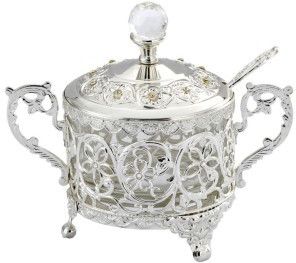 Cukiernica platerowana* to wyjątkowy i elegancki przedmiot, który doskonale sprawdzi się zarówno na specjalne okazje, jak i w codziennym użytku. To nie tylko pojemnik na cukier, ale także ozdoba stołu, która dodaje uroku każdemu przyjęciu lub spotkaniu. Oto kilka kluczowych cech i informacji na temat cukiernicy platerowanej: Wyjątkowy design: Cukiernica platerowana jest wykonana z wysokiej jakości metalu, który został poddany procesowi platerowania. Dzięki temu produkt ten prezentuje się bardzo elegancko i efektownie(atrakcyjnie zdobiona). Funkcjonalność: Ten produkt służy do przechowywania cukru, co sprawia, że jest niezbędny podczas serwowania herbaty, kawy czy innych napojów. Cukiernica jest wyposażona w pokrywkę/wieczko, które chroni cukier przed zanieczyszczeniem i też trochę przed wilgocią. Doskonała dekoracja stołu: Cukiernica platerowana to nie tylko praktyczny pojemnik, ale również element dekoracyjny stołu. Może być używana codziennie, ale również na różnego rodzaju uroczystościach, np.: rodzinne spotkanie ;-) Dzięki swojej elegancji i blaskowi przyciąga uwagę gości i nadaje prestiżu każdej okazji. Trwałość: Dzięki zastosowaniu platerowania, cukiernica jest odporowa na korozję i utratę blasku, a to oznacza, że będzie służyć przez wiele lat, zachowując swój piękny wygląd. Łatwa konserwacja: Cukiernicę platerowaną można łatwo utrzymywać w czystości, wystarczy regularnie ją czyścić i polerować, aby zachować jej blask i elegancję. Cukiernica platerowana to wyjątkowy produkt, który łączy w sobie funkcjonalność i estetykę. Dzięki swojemu wyglądowi i trwałości, doskonale sprawdza się jako element dekoracyjny stołu oraz praktyczny naczynie do serwowania cukru. Jest to również doskonały pomysł na prezent dla bliskich lub jako ozdoba w Twojej własnej kuchni. */proces platerowania zwany również galwanizacją, to technika powlekania przedmiotów warstwą metalu w celu poprawienia ich wyglądu, trwałości i innych właściwości. Platerowanie polega na pokrywaniu powierzchni danego przedmiotu cienką warstwą metalu, najczęściej złota, srebra lub miedzi, w celu uzyskania pożądanych właściwości estetycznych lub ochrony przed korozją. Proces ten jest szeroko wykorzystywany w przemyśle jubilerskim, produkcji zastawy stołowej(jak np.: cukiernice z naszej oferty), galanterii oraz w wielu innych dziedzinach.