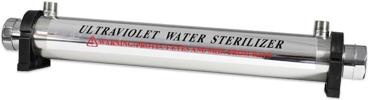 LAMPA BAKTERIOBÓJCZA UV Lampy bakteriobójcze niszczą do 99,99% drobnoustrojów występujących w wodzie. Nie wpływają na skład chemiczny wody. Najlepsze efekty obserwuje się przy długości fali 254nm. Istnieją dwa główne mechanizmy działania UV. Pierwszy polega na wytworzeniu dimerów pirymidynowch na tej samej nici DNA lub RNA. Uniemożliwia to reprodukcję komórek. Drugi mechanizm polega na przerwaniu ciągłości ściany komórkowej i tym samym zniszczeniu całego mikroorganizmu. Specyfikacja: Przepływ maksymalny - 2850 l/h Moc promiennika- 55 W Rozmiar przyłącza- 1 cal Wymiary - 51 x 6.5 cm