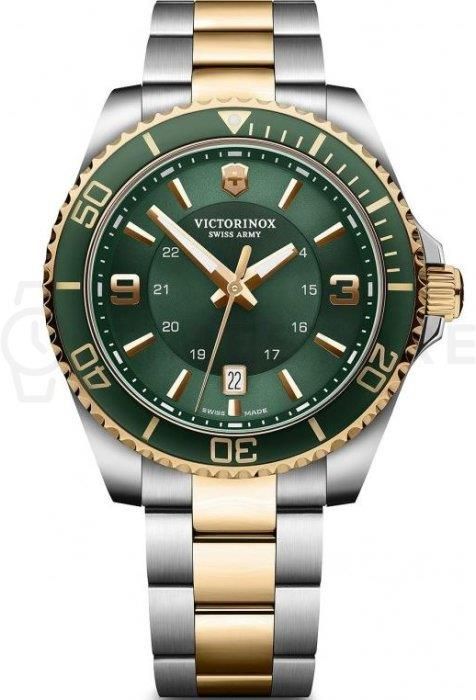 Victorinox 242008 Zegarek Victorinox 242008 to połączenie funkcjonalności i stylu, które zaspokoi potrzeby zarówno miłośników sportowych akcesoriów, jak i eleganckiego designu. Jego sportowy charakter sprawia, że idealnie nadaje się do codziennego noszenia, a jednocześnie wyróżnia się na tle innych modeli dzięki starannemu wykonaniu oraz zastosowaniu wysokiej jakości materiałów. Mechanizm i funkcje Model Victorinox 242008 wyposażony jest w mechanizm kwarcowy, co zapewnia wysoką precyzję oraz niezawodność. Zegarek posiada również funkcję datownika, co czyni go praktycznym wyborem na co dzień. Dzięki zastosowaniu sprawdzonego mechanizmu, użytkownik może cieszyć się komfortem użytkowania bez konieczności regularnego nakręcania. Materiał i wymiary Wysokiej jakości materiały użyte do produkcji zegarka mają kluczowe znaczenie dla jego trwałości i estetyki. Koperta zegarka wykonana jest z stali nierdzewnej, co zapewnia odporność na zarysowania oraz korozję. Jej średnica wynosi 43 mm, a grubość koperty to 12 mm, co sprawia, że zegarek jest zarówno masywny, jak i elegancki. Dodatkowo, odpowiedni dobór wymiarów sprawia, że jest on praktyczny w codziennym użytkowaniu. Szkło i tarcza W modelu Victorinox 242008 zastosowano szkło szafirowe, które jest jednym z najtrwalszych materiałów stosowanych w zegarmistrzostwie. Charakteryzuje się ono wysoką odpornością na zarysowania oraz doskonałą przejrzystością. Tarcza zegarka w głębokim zielonym kolorze nadaje mu świeżości i nowoczesności, a luminescencyjne wskazówki oraz indeksy ułatwiają odczytywanie godziny nawet w ciemności. Pasek i zapięcie Pasek zegarka to element, który wpływa na komfort noszenia oraz jego styl. W przypadku modelu Victorinox 242008 zastosowano dwukolorową bransoletę ze stali nierdzewnej, łączącą srebrny kolor z różowym złotem. Szerokość paska wynosi 21 mm, a maksymalny obwód nadgarstka to aż 205 mm, co zapewnia wygodę noszenia. Zapięcie na sprzączkę dodatkowo zwiększa bezpieczeństwo użytkowania. Kluczowe cechy zegarka Oto kluczowe cechy zegarka Victorinox 242008: Mechanizm: kwarcowy, Wodoszczelność: 100m, Materiał koperty: stal nierdzewna, Szkło: szafirowe, Styl: sportowy, Szerokość koperty: 43 mm, Szerokość paska: 21 mm. Wodoszczelność i zastosowanie Zegarek Victorinox 242008 charakteryzuje się wodoszczelnością na poziomie 100 metrów (10 ATM), co czyni go odpowiednim do pływania oraz nurkowania na niewielkich głębokościach. Taki wskaźnik zapewnia użytkownikowi poczucie bezpieczeństwa, niezależnie od przeznaczenia zegarka. Styl i design tego modelu wyróżniają się sportowym charakterem, jednocześnie zyskując na elegancji dzięki połączeniu kolorów oraz wyrazistym detalom. Zegarek Victorinox 242008 to doskonały wybór dla osób, które cenią sobie zarówno funkcjonalność, jak i modny wygląd.