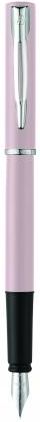 Pióro wieczne Waterman Allure Pastel Różowe CT Pióro wieczne Waterman Allure Pastel stworzono myślą o subtelnych osobach, doceniających delikatne, romantyczne produkty piśmiennicze. Pióro Allure w kolorze różowym jest idealne do codziennego użytku. Klips, pierścień i stalówka w rozmiarze F, wykonane ze stali nierdzewnej i pokryte błyszczącym chromem dodają wyrazistości. Ponadto lekkość i niezawodność pióra sprawia, że jest bardzo praktyczne i funkcjonalne. Pióro można nabić dołączonym nabojem. Jest również kompatybilne ze standardowym tłoczkiem Waterman. Zestaw zawiera: pióro wieczne, firmowe pudełko Waterman, nabój startowy, opcjonalnie książeczka gwarancyjna.