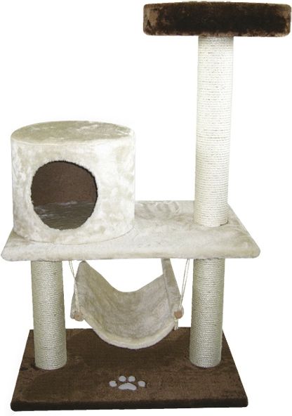 Yarro Drapak Comfort beżowo-brązowy Nic tak dobrze nie zaspokaja potrzeb kota jak pełna micha i dobra zabawa! Drapak z budką, półką i hamakiem dla kota. Wyjątkowo elegancko wykonany, większy drapak o charakterystycznym kształcie to ciekawy i atrakcyjny prezent dla Twojego kota. Cechy produktu Kocia …