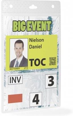 Identyfikator z kolekcji Universal wykonany z twardej folii otwarta od góry kieszeń daje możliwość szybkiego wyjęcia i wymiany karty idealny do kart identyfikacyjnych, etykiet, dowodów itp. posiada trzy otwory, co daje możliwość użycia go zarówno z łańcuszkiem, zaczepem, taśmą jak i zwijaczem wymiary: format A6 105x148 mm / pionowy (dotyczą wkładu do identyfikatora) opakowanie zawiera 20 szt transparentny polecamy bezpłatny program do prostego opisywania identyfikatorów https://webapp.duraprint.de/login