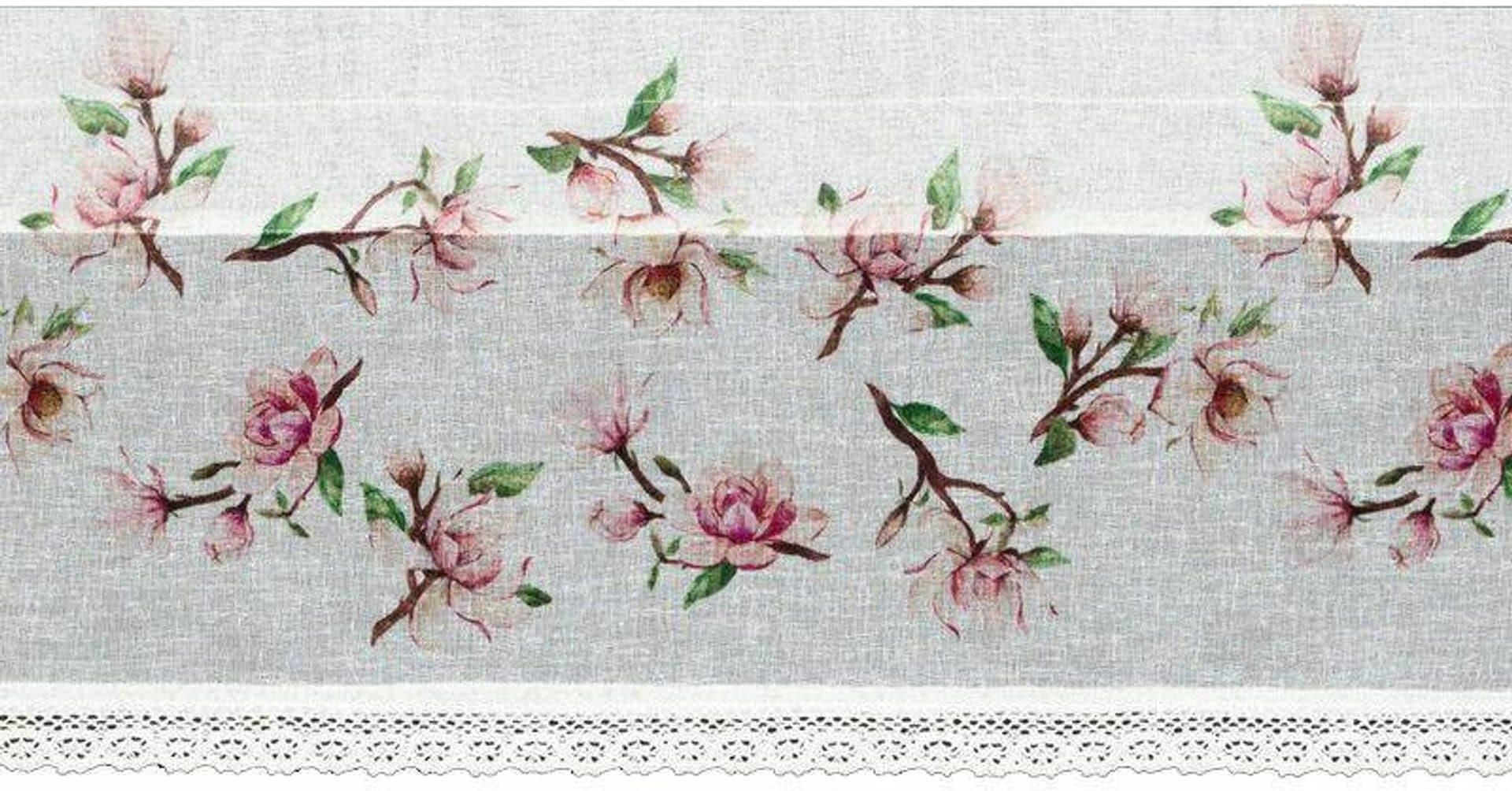Firana gotowa zazdrostka ARI 150x30 Eurofirany biała różowe magnolie Dobrze dobrane zasłony sprawią, że Twoje wnętrze stanie się bardziej przytulne, a Ty poczujesz się w nim komfortowo każdego dnia. Zazdrostka z nadrukiem różowych kwiatów magnolii i koronką. Zazdrostki w kuchni to gwarancja …