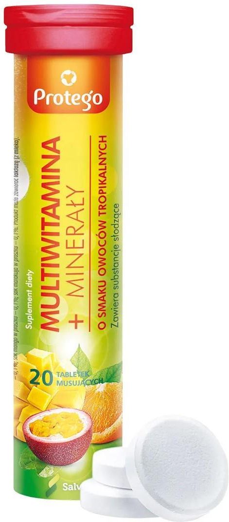 Protego Multiwitamina + Minerały smak tropikalny, 20tabl. musujących Ożarów