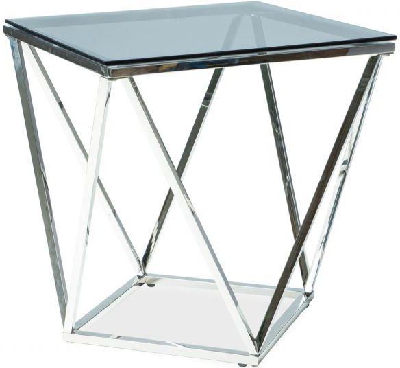 Ława Silver B Idealna ława dla miłośników nowoczesnych aranżacji oraz stylu glamour. Efektowna i niebanalna forma zapewni modny wygląd wnętrza. Blat wykonany z dymionego szkła hartowanego jest odporny na pęknięcia i odpryski. Bez obaw możemy także stawiać na nim gorące naczynia. Dymiony kolor szkła doskonale dopasowuje się do całości tworząc zachwycającą kompozycję. Na uwagę zasługuje przede wszystkim zmyślny stelaż wykonany z chromowanego metalu. Ciekawy i oryginalny kształt stanie się ozdobą każdego wnętrza. Najważniejsze cechy Nowoczesny design Blat wykonany ze szkła hartowanego Efektowny, chromowany stelaż Grubość blatu - 8 mm Maksymalne obciążenie - 50 kg Produkt do samodzielnego montażu Dane techniczne: Blat Materiał: szkło hartowane Kolor: szkło dymione Stelaż Materiał: metal Kolor: chrom Wymiary Szerokość - 50 cm Długość - 50 cm Wysokość - 53 cm