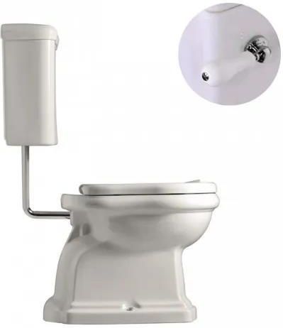 Miska do kompaku - odpływ : pionowy - wersja bez kołnierza wewnętrznego : nie - sposób montażu: do posadzki - kolor : biały Dolnopłuk - uruchamienie : z boku - dopływ wody : z boku - kolor : biały Rura spłukująca do dolnopłuku - łączy zbiornik z miską WC - materiał : mosiądz - kolor : chrom Mechanizm spłukujący - uruchamienie : z boku - kolor przycisku : chrom Do kompletowania z deską