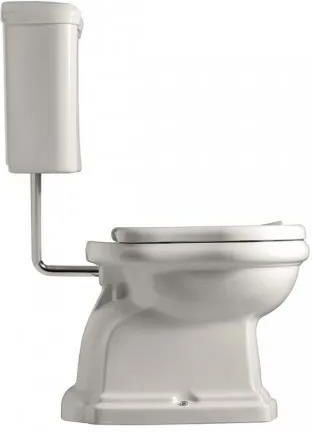 Miska do kompaku - odpływ : poziomy - wersja bez kołnierza wewnętrznego : nie - sposób montażu: do posadzki - kolor : biały Dolnopłuk - uruchamienie : z góry - dopływ wody : z boku - kolor : biały Rura spłukująca do dolnopłuku - łączy zbiornik z miską WC - materiał : mosiądz - kolor : stare złoto Mechanizm spłukujący - uruchamienie : z góry - kolor przycisku : stare złoto Do kompletowania z deską