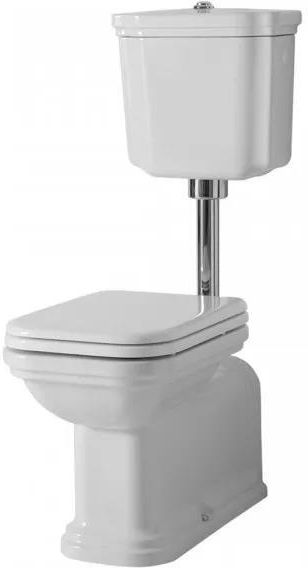Miska do kompaku - odpływ : uniwersalny - wersja bez kołnierza wewnętrznego : nie - sposób montażu: do posadzki - kolor : biały Dolnopłuk - uruchamienie : z góry - dopływ wody : z boku - kolor : biały Rura spłukująca do dolnopłuku - łączy zbiornik z miską WC - materiał : mosiądz - kolor : stare złoto Mechanizm spłukujący - uruchamienie : z góry - kolor przycisku : stare złoto Do kompletowania z deską