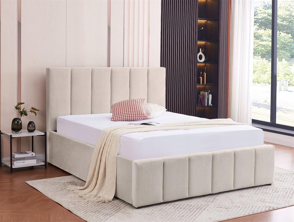 PRATO 140x200 Łóżko Tapicerowane ecru jasny beż, wanilia stelaż, pojemnik na pościel Ozimek