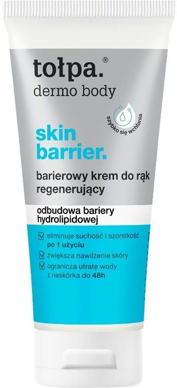Barierowy krem do rąk regenerujący tołpa. dermo body skin barrier 60 ml dla kogo? dla osób o skórze odwodnionej, suchej, potrzebującej nawilżenia i regeneracji. jak działa? odbudowuje barierę hydrolipidową skóry dłoni, silnie nawilża, zapobiega przesuszeniu, ogranicza ucieczkę wody z naskórka, …