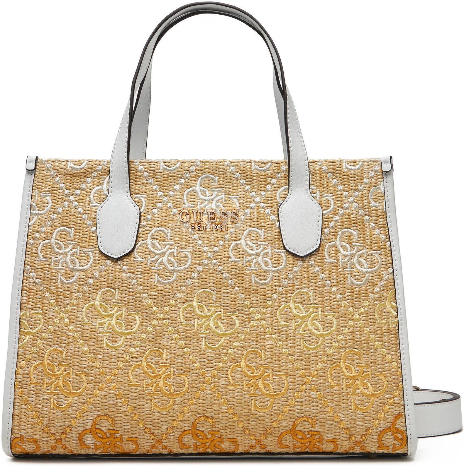 Guess Damskie Torebka HWSW8665220 Beżowy, Biały Torebka Guess to synonim elegancji i stylu, który idealnie wpisuje się w potrzeby nowoczesnej kobiety. Wykonana z wysokiej jakości materiału tekstylnego, zachwyca trwałością i estetyką. Jej mały rozmiar sprawia, że jest doskonała na wieczorne wyjścia lub codzienne użycie, kiedy potrzebujesz jedynie najważniejszych drobiazgów. Twarda konstrukcja gwarantuje, że torebka zachowa swój kształt i będzie wyglądać perfekcyjnie w każdej sytuacji. To dodatek, który podkreśli Twój wyjątkowy styl i charakter.