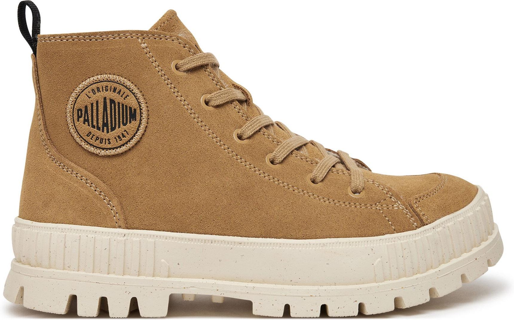 Buty Trapery Palladium Pallashock Zip Warm Dear Brown 74353 Beżowe Symbol: PA150-a Kolor: Beżowy Rozmiar: 44 (28.5 cm) Wiecej rozmiarów i kolorów znajdziesz na pozostałych aukcjach. Opis produktu Damskie trapery Palladium Pallashock Zip to nowoczesna odsłona klasyki lat 90., stworzona z myślą o komforcie i stylu w chłodniejsze dni. Podwyższona cholewka za kostkę wykonana jest w 100% z impregnowanego zamszu, co zapewnia trwałość, odporność na wilgoć i modny wygląd. Podszewka WARMTECH z syntetycznej wełny dba o ciepło i komfort, chroniąc stopy przed niskimi temperaturami. Podwójne zapięcie – sznurowanie i praktyczny zamek błyskawiczny – umożliwia łatwe zakładanie i perfekcyjne dopasowanie butów. Miękka wkładka z mieszanki poliestru i materiału wtryskowego zwiększa wygodę codziennego użytkowania. Gruba, solidna podeszwa inspirowana stylem retro gwarantuje stabilność i przyczepność na miejskich nawierzchniach. Charakterystyczne elementy brandingowe, takie jak wytłoczone logo na języku i bokach buta, podkreślają oryginalny charakter obuwia. Galeria zdjęć