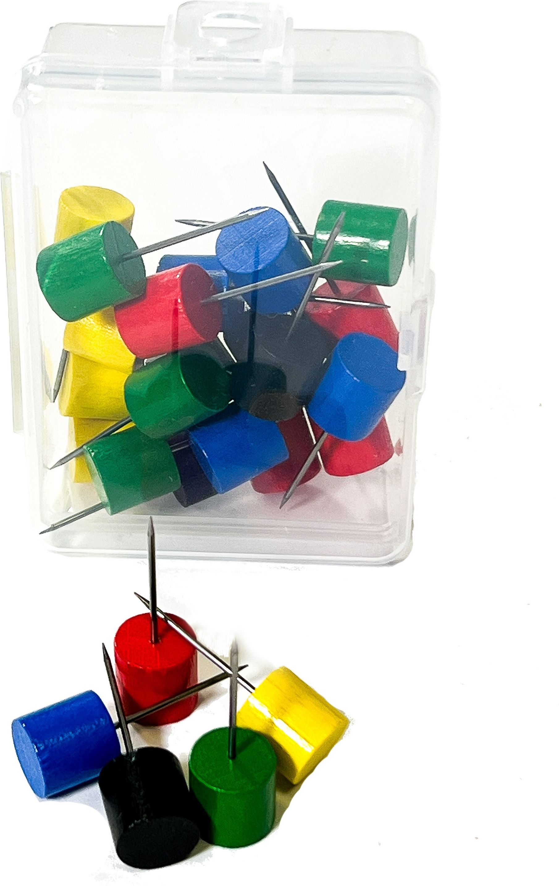 Znaczniki - szpilki wielokolorowe, używane do oznaczania ciekawych miejsc na mapach z podłożem do wpinania typu: korek, pinboard. W opakowaniu znajduje się 25 szt.