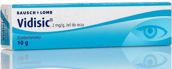 Opis Vidisic to lek w formie płynnego żelu do oczu, który zastępuje naturalne łzy w zaburzeniach ich wydzielania. Lek stosuje się w objawowym leczeniu zespołu suchego oka, inaczej nazywanego suchym zapaleniem rogówki i spojówek. Żel zawiera karbomer, wiążący wodę, dzięki czemu zapewnia nawilżenie spojówek i rogówek. Działanie Działanie żelu polega na wiązaniu wody przez karbomer, przez co na powierzchni oka powstaje przezroczysta warstwa ochronna, która nawilża rogówki jak również spojówki. Karbomer to wielkocząsteczkowy związek o właściwościach zbliżonych do naturalnych łez, tzn. posiada dużą lepkość i fizjologiczne pH. Wskazania Lek Vidisic jest stosowany w objawowym leczeniu zespołu suchego oka (zwanego także suchym zapaleniem rogówki i spojówek). Skład Substancją czynną leku jest karbomer (Carbomerum). 1 g żelu zawiera 2 mg karbomeru. Substancje pomocnicze: cetrymid, sodu wodorotlenek, sorbitol, woda do wstrzykiwań. Dawkowanie Ten lek należy zawsze stosować dokładnie tak, jak to opisano w ulotce dla pacjenta lub według zaleceń lekarza lub farmaceuty. W razie wątpliwości należy zwrócić się do lekarza lub farmaceuty. Dawkowanie w leczeniu zespołu suchego oka zależy od stanu indywidualnego pacjenta. Krople należy podawać do worka spojówkowego 3 do 5 razy na dobę lub w zależności od potrzeb częściej oraz około 30 minut przed snem (w przeciwnym razie istnieje ryzyko sklejenia powiek). Należy konsultować się z lekarzem okulistą w trakcie stosowania produktu Vidisic w leczeniu zespołu suchego oka, które zazwyczaj wymaga długotrwałego lub ciągłego leczenia. Przeciwwskazania Nie stosować Vidisic u osób uczulonych na substancję czynną lub na którąkolwiek substancję pomocniczą. Działania niepożądane Jak każdy lek, lek Vidisic może powodować działania niepożądane, chociaż nie u każdego one wystąpią. Bardzo rzadko występujące działania niepożądane (mogą wystąpić u nie więcej niż 1 na 10 000 osób): pieczenie oczu, zaczerwienienie oczu, wyprysk na powiece, uczucie obecności ciała obcego w oku, olbrzymiobrodawkowe zapalenie spojówek, świąd oczu, uczucie lepkości w oku, powierzchniowe punktowe zapalenie rogówki, łzawienie, niewyraźne widzenie. Powyższe reakcje, w tym reakcje pochodzenia alergicznego, mogą być wywołane przez substancję konserwującą zawartą w leku (cetrymid) lub mogą być związane z nietolerancją jednego z pozostałych składników leku. Cetrymid może także powodować uszkodzenie nabłonka rogówki. Niewyraźne widzenie po podaniu leku Vidisic może być związane z dużą lepkością produktu. Ostrzeżenia i środki ostrożności Jeśli objawy zespołu suchego oka utrzymują się lub nasilają się, należy przerwać stosowanie leku i skonsultować się z lekarzem. Vidisic jest produktem jałowym do pierwszego otwarcia i ważne, aby utrzymywać opakowanie oraz sam lek w czystości. Pacjenci noszący soczewki kontaktowe przed zastosowaniem leku powinni je zdjąć. Po aplikacji żelu, soczewki można założyć po minimum 15 minutach. Lek Vidisic zawiera cetrymid jako środek konserwujący, który stosowany często lub przez długi okres czasu może powodować podrażnienie oka (pieczenie, przekrwienie, uczucie obecności ciała obcego) i może uszkadzać nabłonek rogówki. Jeśli wystąpią powyższe działania niepożądane, należy przerwać stosowanie leku Vidisic i skontaktować się z lekarzem lub farmaceutą, którzy zalecą stosowanie innych leków, niezawierających środków konserwujących. Stosowanie innych leków Należy powiedzieć lekarzowi lub farmaceucie o wszystkich lekach stosowanych przez pacjenta obecnie lub ostatnio, a także o lekach, które pacjent planuje stosować. Vidisic może wydłużać czas kontaktu innych stosowanych leków okulistycznych, dlatego należy zachować minimum 5 minut przerwy pomiędzy podaniem kolejnych kropli do oka, a w przypadku maści co najmniej 15 minut. Vidisic powinien być zawsze stosowany jako ostatni. Ciąża i karmienie piersią Jeśli pacjentka jest w ciąży lub karmi piersią, przypuszcza że może być w ciąży lub gdy planuje mieć dziecko, powinna poradzić się lekarza lub farmaceuty przed zastosowaniem tego leku. Nie należy stosować leku Vidisic u kobiet w ciąży i karmiących piersią. Prowadzenie pojazdów i obsługa maszyn Lek Vidisic wywiera umiarkowany wpływ na zdolność prowadzenia pojazdów i obsługiwania maszyn. Bezpośrednio po zastosowaniu lek może powodować zaburzenia ostrości widzenia przez krótki okres czasu, powodując niewyraźne widzenie. Nie należy prowadzić pojazdów, obsługiwać maszyn ani wykonywać potencjalnie niebezpiecznych prac do momentu odzyskania ostrości widzenia. Przechowywanie Przechowywać w miejscu niewidocznym i niedostępnym dla dzieci. Przechowywać w temperaturze poniżej 25°C. Niezużyty lek wyrzucić po 6 tygodniach od pierwszego otwarcia tuby.
