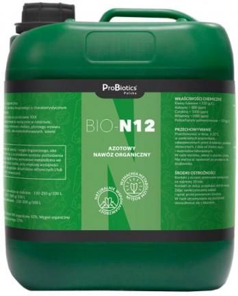 Bio-N12 5L Bio-N12 5L to innowacyjny nawóz w formie płynnej, stworzony przez firmę ProBiotics. Jego zastosowanie w uprawach roślinnych przyczynia się do zdrowia roślin oraz zwiększenia plonów. Dzięki unikalnemu składowi, Bio-N12 skutecznie wspiera rolników i ogrodników w walce z szkodnikami i chorobami, a także poprawia kondycję gleby. Skład i działanie Nawóz Bio-N12 wyróżnia się wysoką zawartością substancji aktywnych. Głównym składnikiem jest azot w formie organicznej (10%), co czyni go doskonałym źródłem składników odżywczych. Łączna zawartość azotu wynosi 11%, co zapewnia roślinom odpowiednią ilość tego niezbędnego pierwiastka. Oprócz azotu, nawóz zawiera również organiczny węgiel (25%), co wspiera mikroflorę glebową oraz poprawia strukturę gleby. Dodatkowo, produkt wzbogacony jest o kwasy fulwowe, auksyny, cytokin i witaminy, które przyczyniają się do lepszego wzrostu i owocowania roślin. Zastosowanie Zastosowanie nawozu Bio-N12 jest niezwykle szerokie i obejmuje różnorodne uprawy, takie jak drzewa owocowe, warzywa oraz rośliny jagodowe. Dawkowanie preparatu jest kluczowe, aby osiągnąć optymalne wyniki i efektywność działania. W zależności od rodzaju uprawy, zaleca się stosowanie następujących dawek: drzewa owocowe: 150-250 ml na 100 L wody, rośliny jagodowe: 100-200 ml na 100 L wody, warzywa: 100-200 ml na 100 L wody, uprawy rolnicze: 100-150 ml na 100 L wody. Zaleca się powtarzanie aplikacji co 10-14 dni, w zależności od warunków pogodowych, co pozwoli na optymalne wsparcie dla roślin. Zalety Nawóz Bio-N12 wyróżnia się wieloma korzystnymi właściwościami, które przyciągają uwagę ogrodników i rolników: ekologiczny skład: produkt jest dopuszczony do stosowania w rolnictwie ekologicznym, co zapewnia jego bezpieczeństwo dla roślin i zwierząt, bezpieczeństwo dla roślin i zwierząt: nawóz jest bezpieczny dla pszczół oraz innych organizmów pożytecznych, co podkreśla jego ekologiczne właściwości, wsparcie dla wzrostu: obecność auksyn i cytokin wpływa na lepszy rozwój roślin oraz ich owocowanie, wielofunkcyjność: może być stosowany na różnych rodzajach upraw, co czyni go uniwersalnym rozwiązaniem dla ogrodników. Bezpieczeństwo Podczas aplikacji preparatu Bio-N12 zaleca się zachowanie podstawowych środków ostrożności. Użytkownik powinien stosować rękawice ochronne oraz maski, aby zminimalizować kontakt z preparatem oraz inhalację drobnych cząsteczek. Dzięki temu, aplikacja środka będzie bezpieczna i komfortowa. Opakowanie i aplikacja Nawóz Bio-N12 dostępny jest w wygodnym opakowaniu o pojemności 5 litrów. Forma płynna sprawia, że preparat jest łatwy do rozcieńczenia w wodzie, a następnie aplikacji za pomocą opryskiwacza. Taki sposób aplikacji pozwala na łatwe i efektywne nawożenie roślin. Czas ochrony roślin po zastosowaniu nawozu wynosi do 4 tygodni, co umożliwia długotrwałe wsparcie dla wzrostu i owocowania roślin. Dzięki temu, użytkownicy mogą planować kolejne aplikacje w sposób, który zapewni optymalne warunki dla ich upraw.