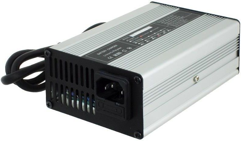 Ładowarka dla ogniw litowo-żelazowo-fosforanowych (LiFePO4) 25,6V 7A Ładowarka może być podłączona bezpośrednio do gniazda AC 220V-240V. Czas ładowania zależy od pojemności akumulatora. Generalnie, czas ładowania (h) jest równy pojemności akumulatora (mAh) / prąd ładowania (mA). Niebieski przewód oznacza DC(-). Czerwony DC(+). Ładowarka odpowiednia do ładowania 8 ogniw połączonych w szereg czyli pakietów LiFePO4 o zakresie napięciowym 16V(min) - 29,2V(max). Pakiety, które można ładować tą ładowarką dostępne są tutaj. Wskaźniki ładowania:LED1: czerwony (Urządzenie włączone/Wskaźnik zasilania); LED2: na początku świeci na zielono. Po podłączeniu pakietu świeci na czerwono (Ładowanie), na końcu ładowania zaczyna pulsować aż po naładowaniu świeci na zielono. Dane techniczne producent: E-Shine model: ES240J napięcie wejściowe: 220-240VAC 50/60Hz napięcie wyjściowe: 25,6V (dla 8 ogniw w szeregu) zakresy napięciowe: 16V - 29,2V prąd wyjściowy: 7A moc maksymalna: 240W rodzaj ładowanych akumulatorów: litowo-żelazowo-fosforanowych (LiFePO4) temperatura pracy: 0 ~ 40°C temperatura przechowywania: -10 ~ 85°C wymiary: długość: 170mm; szerokość: 90mm; grubość: 50mm waga: 1000g obudowa: aluminiowa (lepiej odprowadza ciepło)