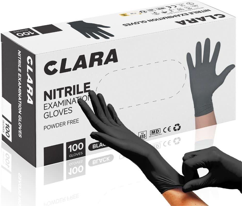 Clara Rękawiczki Nitrylowe Bezpudrowe Czarne L 100Szt. Ozorków