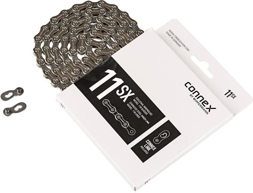 Wilhelm Wippermann rozpoczął produkcję części rowerowych w Hagen w Niemczech w czasie kiedy na rynku pojawił się pierwszy rower z napędem łańcuchowym. Wilhelm stwierdził, że wiele rzeczy w nowym wynalazku można poprawić kiedy jego syn po raz kolejny zerwał łańcuch w swoim rowerze. Wkrótce Wilhelm sam zaprojektował łańcuch i w 1893 r. otworzył firmę będącą obecnie jedną z najstarszych na świecie w branży rowerowej. Przez kolejne lata firma Wippermann wprowadziła na rynek wiele udanych i trwałych modeli łańcuchów, pedałów czy hamulców rowerowych. Do dziś kojarzona jest z komponentami najwyższej jakości. Najwyższej jakości wytrzymały łańcuch 11-rzędowy dla najbardziej wymagających kolarzy. Wykonanie wewnętrznych ogniw ze stali nierdzewnej i zastosowana trwała i innowacyjna powłoka niklowa sprawiają, że łańcuch 11SX jest ekstremalnie opdporny na korozję. Lekki i wytrzymały łańcuch ekstremalnie odporny na korozję. Przeznaczony do napędów 11-rzędowych. Wewnętrzne ogniwa wykonane ze stali nierdzewnej Powłoka niklowa zwiększająca odporność na korozję Specyfikacja: Długość pina: 5,60 mm Szerokość tulejki: 2,20 mm Liczba ogniw: 118 Waga: 270 Kompatybilny z wszystkimi napędami 11-rzędowymi, zarówno szosowymi jak i MTB - Ochrona przed korozją - Odporność na zużycie - Niska waga - Kompatybilność