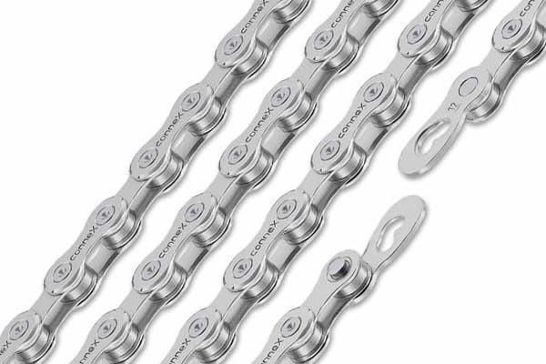 Bezkompromisowo cichy, szybki i precyzyjny łańcuch 12-rzędowy. Dzięki ogniwom wykonanym w technologii High Performance łańcuch zapewnia zmiany biegów z maksymalną precyzją. Spinka w komplecie. Specyfikacja: łańcuch do kaset 12 rzędowych wymiary: 1/2" x 11/128" długość pinu: 5,30 mm szerokość sworznia: 2,10 mm wysoka jakość wykonania wewnętrzne ogniwa ze stali (bez powłok) zewnętrzne ogniwa ze stali spinka conneX link 126 lub 138 ogniw waga 270g/126 ogniw; 312g/138 ogniw