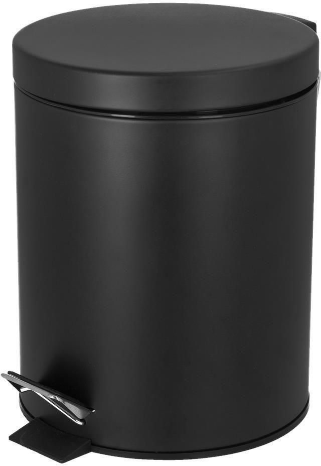Kosz z pedałem wyposażony w pokrywę wolnoopadającą i wyjmowany pojemnik wewnętrzny. Matowoczarna stal.
