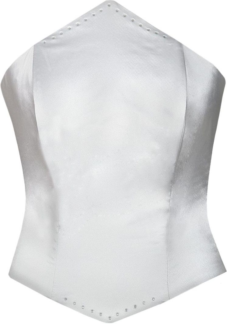 Gorset z fiszbinami wiązany z przodu oraz z tyłu. W górnej i dolnej części gorsetu znajdują się ozdobne świecące oczka. Gorsetem podkreślisz piękne ramiona i uwydatnisz biust, wiązaniem z tyłu dobrze go dopasujesz. Materiał - połyskująca satyna. Dopasowana góra, podkreślona talia to klasa i styl. …