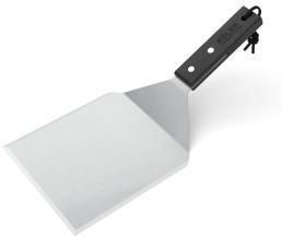 Szpatuła KÖLER o powierzchni roboczej aż 15cm na 14cm oraz długości całkowitej 31cm. Konstrukcja wykonana ze stali nierdzewnej o grubości aż 1,5mm zapewnia idealne połączenie elastyczności i sztywności. Z kolei ergonomiczny kształt oraz drewniana rękojeść odpowiada za pewny chwyt, gdy podnosisz, przerzucasz, ugniatasz, porcjujesz czy serwujesz swoje ulubione dania z grilla.