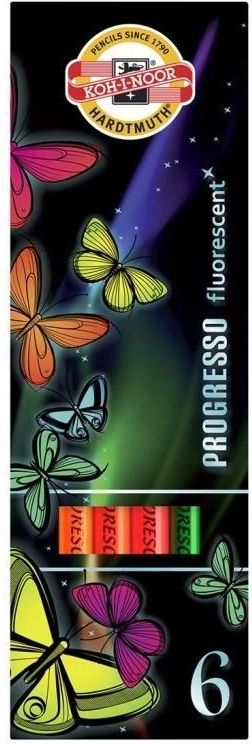 Kredki Progresso Fluorescencyjne w 6 zjawiskowych kolorach od Koh-I-Noor Ten zestaw zawiera sześć kredek bezdrzewnych Progresso, które olśniewają swoją intensywnością. Wyróżniają się one pełnym spektrum fluorescencyjnych kolorów: żółty, pomarańczowy, czerwony, różowy, niebieski i zielony. Te …
