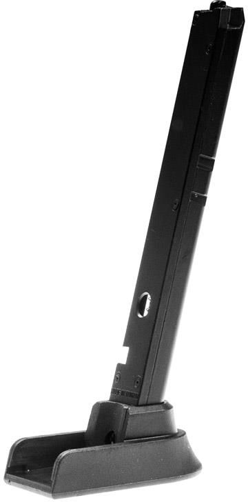 Zapasowy magazynek o pojemności 15 kulek BB's 6mm, dedykowany do repliki pistoletu Heckler & Koch HK45 na CO2. Magazynek typu "stick" posiada solidną konstrukcję wykonaną z metalu oraz wytrzymałego polimeru. Poszerzona stopka ułatwia wysuwanie magazynka z rękojeści. Donośnik magazynka można zablokować w dolnym położeniu, umożliwia to wygodne ładowanie kulek BB metodą grawitacyjną bezpośrednio z pojemnika. DANE TECHNICZNE Dane podstawowe; Kaliber [mm] 6 mm Dane dodatkowe Pojemność [szt] 15 Typ materiału polimer , aluminium Informacje producenta Producent; Umarex, Niemcy EAN; 4000844572981 Symbol dostawcy 2.5978.1