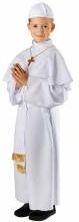 Karnawał jest to okres w którym odbywają się różne przebierane imprezy np. Bal Wszystkich Świętych. Jeżeli Twoja pociecha wybiera się na takie przyjęcie to zadbaj, żeby jej strój wyróżniał się spośród tłumu.Oferujemy, żebyś wcieliła syna w postać papieża. Strój Papieża zawiera: sutannę z pelerynką czapkę pas naszyjnik Materiał: tkanina poliestrowa. Biała sutanna z białą pelerynką oraz charakterystycznym pasem przemieni chłopca w prawdziwego Ojca Świętego.Jak do stroju Głowy Kościoła przystało kostium zawiera czapkę typu piuska oraz zloty naszyjnik z krzyżem. Strój sprawi, że dziecko poczuje się jak prawdziwa osoba duchowna. opis/rozmiar 6-8 lat długość całkowita 100 cm długość rękawa od ramienia 46 cm długość rękawa od pachy 34 cm obwód w klatce piersiowej 100 cm