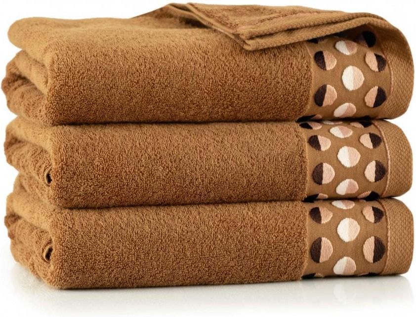 Ręcznik ZEN-2 to nowość pochodząca prosto z fabryki Zwoltex. Jest to odświeżona wersja szlagierowego ręcznika Zen. Ręcznik wyprodukowany został z wysokiej jakości przędzy z bawełny egipskiej przy użyciu nowoczesnych technologii. Ultrasoft technology i bawełna egipska to połączenie idealne. Zapewniają one zwiększoną chłonność, miękkość oraz sprawiają, że ręcznik jest niezwykle przyjemny w dotyku. Ręcznik jest jednobarwny, urozmaicony efektowną bordiurą, na którą składa się potrójny rząd dwukolorowych, haftowanych kół. Ręcznik ZEN jest bardzo starannie wykonany i wykończony. Na pewno długo będzie pieścił skórę swoim miękkim dotykiem i cieszył oko swoim wyglądem. Beżowe ręczniki sprawdzają się w każdej łazience. Wyjątkowo puszyste i miękkie, doskonale współgrają z innymi dodatkami, sprawiając, że całość prezentuje się naprawdę wspaniale. Brązowy Ręcznik 50x90 to rozwiązanie, dzięki któremu każda łazienka będzie wydawać się komfortowa i przytulna. Ręczniki są puszyste i nie powodują podrażnień, dlatego mogą być używane nawet przy pielęgnacji dziecka. Dokładamy starań, by oferowane ręczniki spełniały wszelkie normy bezpieczeństwa, ale jednocześnie oczekiwania jakościowe klientów. Serdecznie zapraszamy do zapoznania się z całą gamą kolorystyczną dostępną w sklepie. Rozmiar: 50x90 Gramatura: 450 g/m2 Skład surowcowy: 100% bawełna egipska PRODUKT POLSKI
