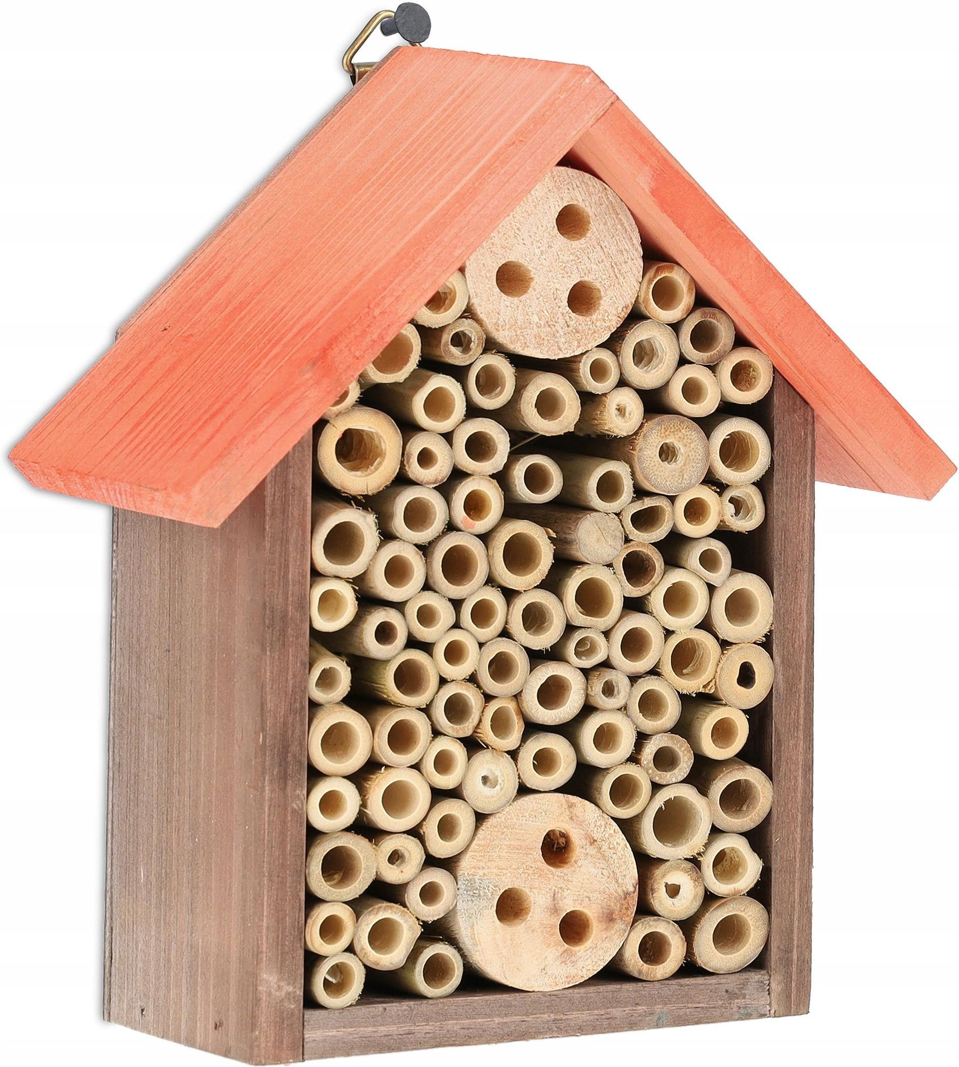 Naturalny domek dla owadów do ogrodu Hotele dla dzikich pszczół stają się coraz ważniejsze dla przetrwania ich gatunku. W miarę jak nasz krajobraz staje się coraz gęściej zaludniony, pszczołom coraz trudniej jest znaleźć odpowiednie miejsca na gniazda. Dzięki budce lęgowej dla pszczół aktywnie przyczyniasz się do ochrony gatunku. Bambusowe rurki są chętnie wybierane przez pszczoły murarki, pszczoły dziurawki czy nawet spokojne osy samotnice. Powieś hotel dla pszczół w swoim ogrodzie lub umieść go na balkonie i obserwuj fascynującą aktywność małych zwierzątek. Hotel dla pożytecznych owadów w ogrodzie dla pszczół, chrząszczy i innych owadów drewniane i bambusowe rurki jako naturalne pomoce lęgowe przyciąga pożyteczne zapylacze do własnego ogrodu świetna okazja do obserwacji dla dzieci i dorosłych w sam raz do postawienia lub zawieszenia drewno z certyfikatem FSC Jak wprowadzić życie do domu dla owadów zapewnij wystarczającą ilość pożywienia dzięki rodzimym dzikim kwiatom i ziołom ustaw hotel dla insektów w kierunku południowym, aby zapewnić owadom dużo słońca umieść w suchym i chronionym przed wpływem czynników atmosferycznych miejscu budkę należy zostawić na zewnątrz także zimą, aby zapobiec przedwczesnemu wykluwaniu w gorące dni oferuj również wodę w poidełku dla owadów Parametry domku dla owadów wymiary: ok. 20 x 17 x 8,5 cm (wys. x szer. x dł.) średnica bambusowych rurek: ok. 0,4 - 1,2 mm waga: ok. 0,5 kg materiał: drewno jodłowe, bambus kolor: brązowy, pomarańczowy, jasnobrązowy Zakres dostawy 1x domek dla owadów bez dekoracji zmontowany Skład Materiału 50% drewno 50% bambus