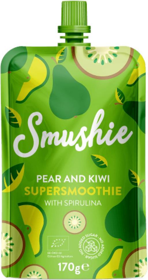 SALVEST Smushie BIO Owocowe puree z gruszek i kiwi ze spiruliną Saszetka z praktycznym zamknięciem zawiera puree z gruszek, kiwi i bananów. Dodatkową porcję błonnika dostarcza płatki owsiane i trochę superfood - Spirulina Wszystko to oczywiście w jakości BIO. Saszetka nie zawiera dodatku cukru, sztucznych barwników, aromatów ani konserwantów. Jeśli Twój mały szkrab nie zje saszetki w całości, możesz ją ponownie zamknąć, a resztę zostawić na później. Produkt poddawany obróbce cieplnej, a jego trwałość zapewnia delikatna pasteryzacja.