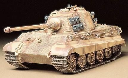 Model German King Tiger Production Turret - Panzerkamfwagen VI Tiger II Konigstiger Sd.Kfz.182 Serien Turm Tamiya - nr. 35164 - scale 1:35 Niemiecki czołg ciężki King Tiger Sd.Kfz.182. Plastikowy model do sklejania i pomalowania. Klej modelarski do plastiku i farby należy zakupić dodatkowo - model ich nie zawiera. Model z japońskiej firmy Tamiya nr katalogowy 35164 wykonano w skali 1/35. Model posiada m.in.: gumowe gąsienice, kalkomanie. Farby Tamiya sugerowane przez producenta do pomalowania modelu czołgu King Tiger: TS-1 (lub XF-64), TS-2 (lub XF-61), TS-3 (lub XF-60), TS-46, X-10, X-11, X-18, XF-1, XF-2, XF-15, XF-56, XF-65, XF-84. Wymiary opakowania modelu do sklejania Tamiya 35164: 38,5 x 24,5 x 6 cm.