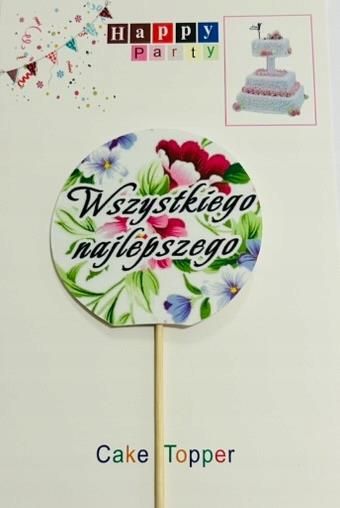 Topper Na Tort Urodzinowy Happy Birthday Wszystkiego Najlepszego Kwiaty Ozorków