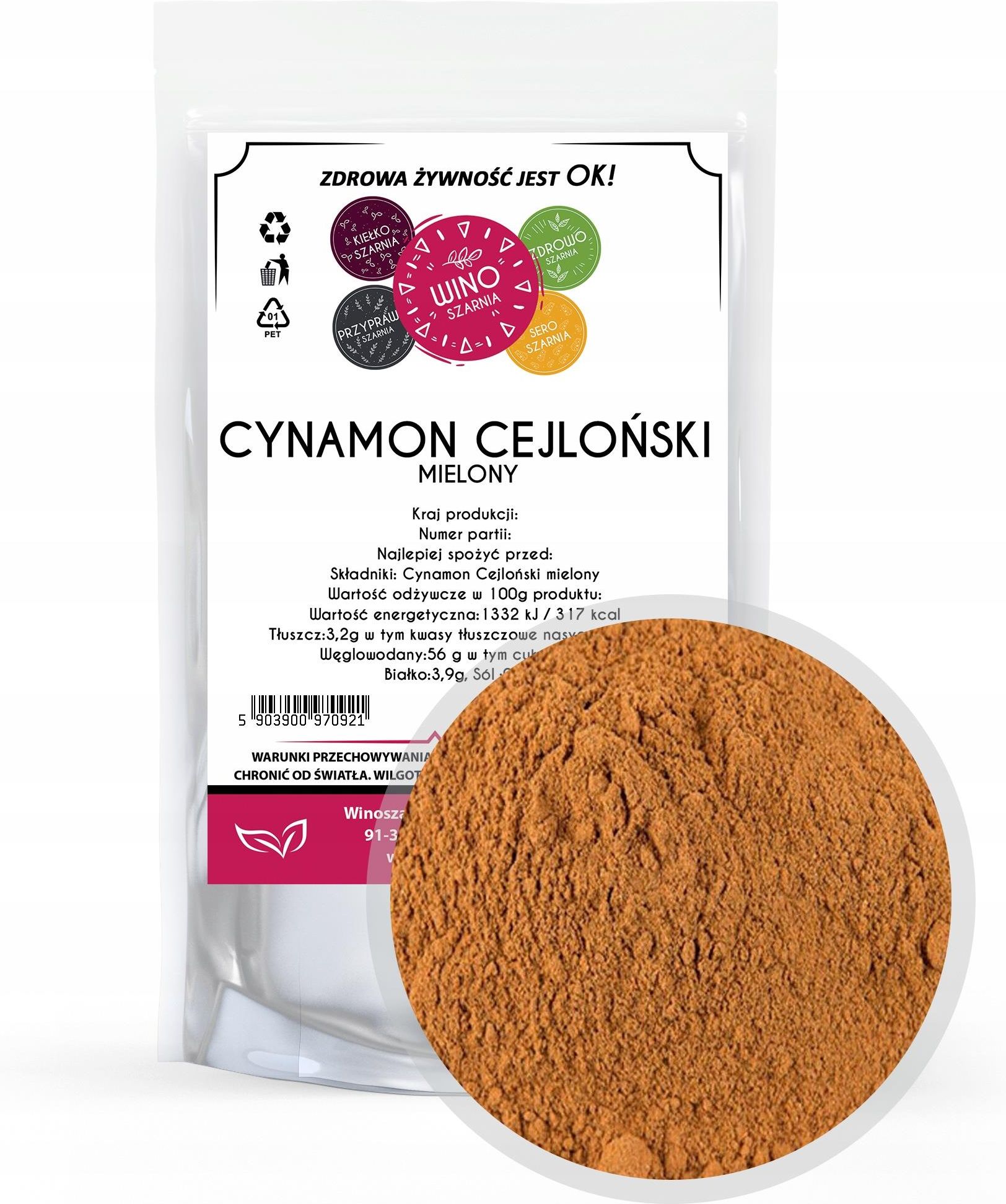 Winoszarnia Cynamon Cejloński Mielon 250g Ozorków