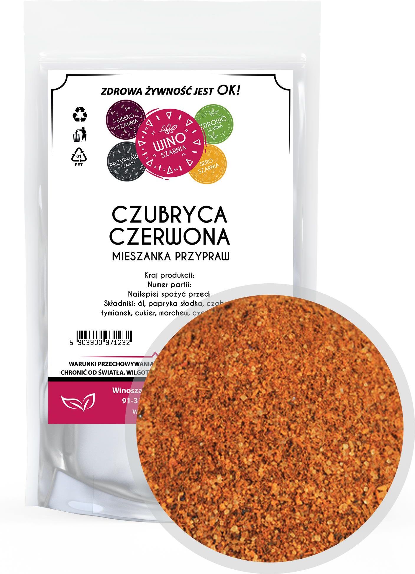 Kompozycja przyprawowa, idealna do różnego rodzaju mięs, zup, ryb, jarzyn, sałatek, serów i kiełbas. Nadaje potrawie wspaniały smak i aromat. Mieszanka powstaje poprzez wymieszanie składników zgodnie z recepturą. Stosowana jest do poprawienia smaku i aromatyzowania potraw. Parametry:Kraj pochodzenia: PolskaSkład: sól, papryka słodka, cząber, tymianek, cukier, marchew, czosnek, chiliKonsystencja: mix przyprawWarunki przechowywania: pomieszczenia suche, wilgotność względna do 75%, temperatura max. 25°C, chronić od światła