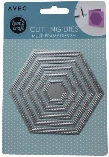 Wykrojnik ramka z przeszyciami sześciokąty 5 szt. wysokość / szerokość po zewnątrz największego: ok. 9,5cm / 10,5cm wysokość / szerokość po zewnątrz najmniejszego: ok. 2,5cm / 3cm