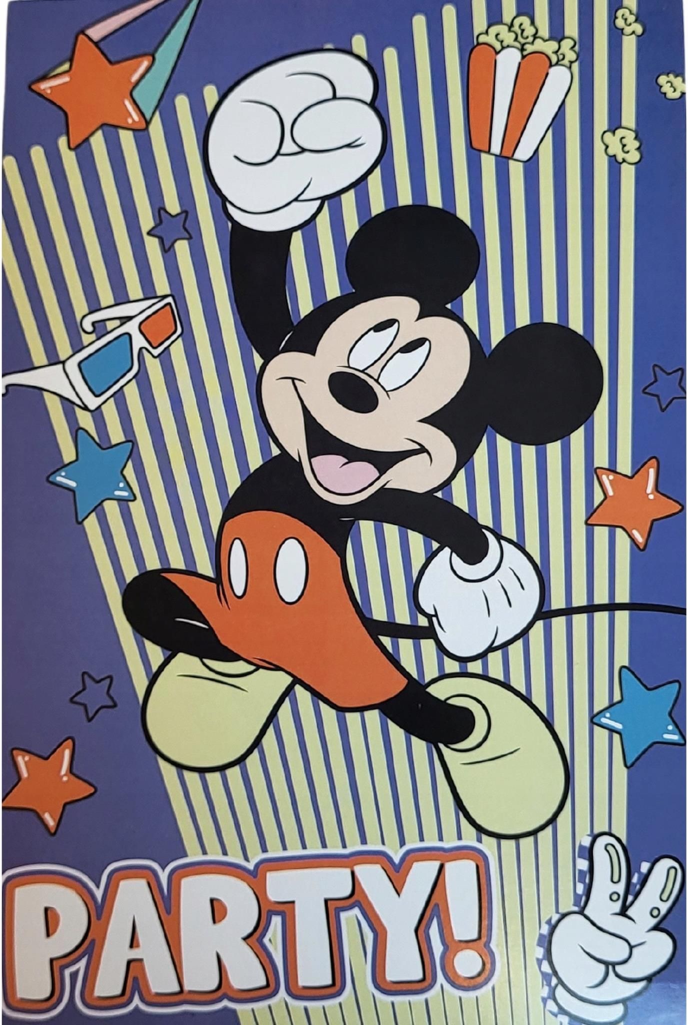 Zaproszenia urodzinowe imprezowe z kopertami Myszka Miki zestaw 5 szt. Zestaw pięciu zaproszeń ozdobionych postacią Myszki Miki wraz z kopertami. Dzięki nim możesz zaprosić najbliższych i znajomych na dowolną imprezę lub spotkanie. Starannie wykonane kartki charakteryzują się ładnym wyglądem i 7 oddzielonymi miejscami na wpisanie szczegółów dotyczących spotkania. Karty zaproszeniowe mają wymiary 15 x 10 cm.