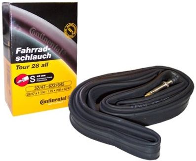Wysokiej jakości dętkowa rowerowa Continental Tour do opon 27/28". Rozmiar opon: 27/28 x 1 1/4 - 1.75 (ETRTO 32/47-622/635) Typ wentyla: AV (samochodowy) Długość wentyla: 40 mm Wersja OEM bez pudełka. Zdjęcie poglądowe. Producent Continental Kod producenta 0180691 EAN/GTIN 4019238595499