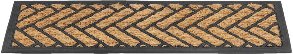 Ładna wycieraczka z włókna kokosowego i gumy. Do użytku wewnątrz i na zewnątrz pomieszczeń. Niewielki kształt, który pasuje na schody lub do mniejszych przestrzeni.
