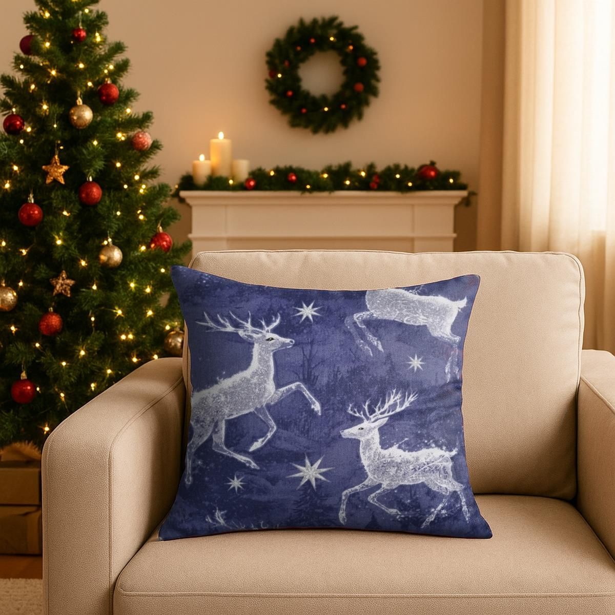 Fan Poszewka Bawełniana Świąteczna 40X40 Granatowa Biała Zaczarowane Renifery Pabianice