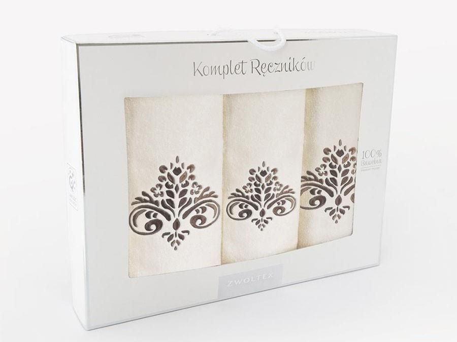 Witamy na naszych aukcjach. Przedmiot aukcji: Komplet prezentowy Zwoltex Wymiary ręczników: 30x50cm +50x90cm + 70x130cm Opakowanie: karton Wzór: SUŁTAN Kolor: ecru Rodzaj i skład: 100% bawełna egipska Gramatura: 370g/m2 Polski producent: Zwoltex Certyfikat: OEKO-TEX standard 100 3-częściowy komplet …